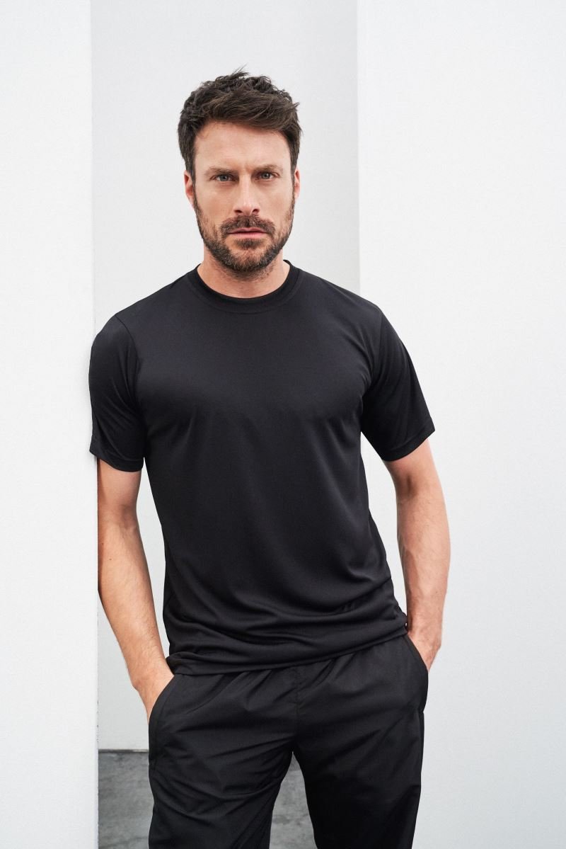 Gerader Schnitt, atmungsaktiv, Nackenband, Doppelnähte an Schultern, Hals- und Armausschnitt, feuchtigkeitsregulierend, schnelltrocknend, 30° waschbar, nicht trocknergeeignet